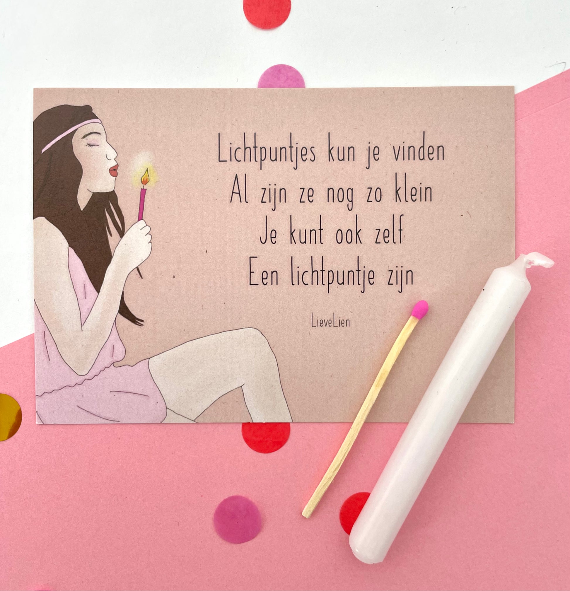 Deze cadeauset is gemaakt om iemand een vleugje hoop en een lieve wens mee te geven. Een kaartje om op te schrijven wat je hart wilt zeggen, en een wenskaarsje dat symbool staat voor licht en mogelijkheden.