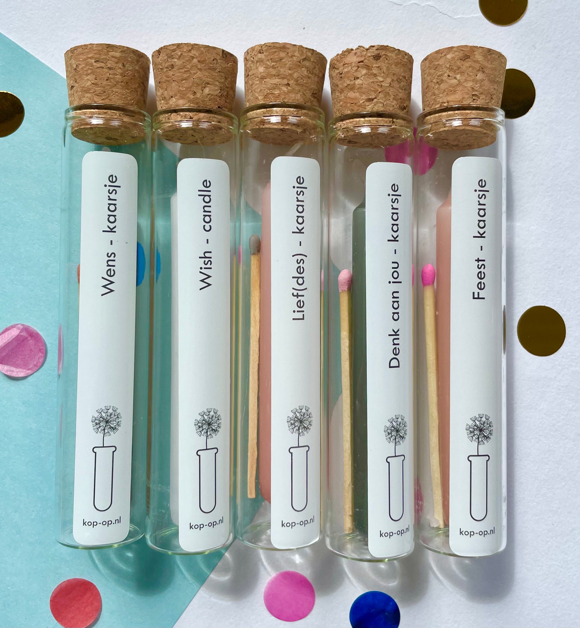 - 1 wenskaarsje in een buisje met kurk