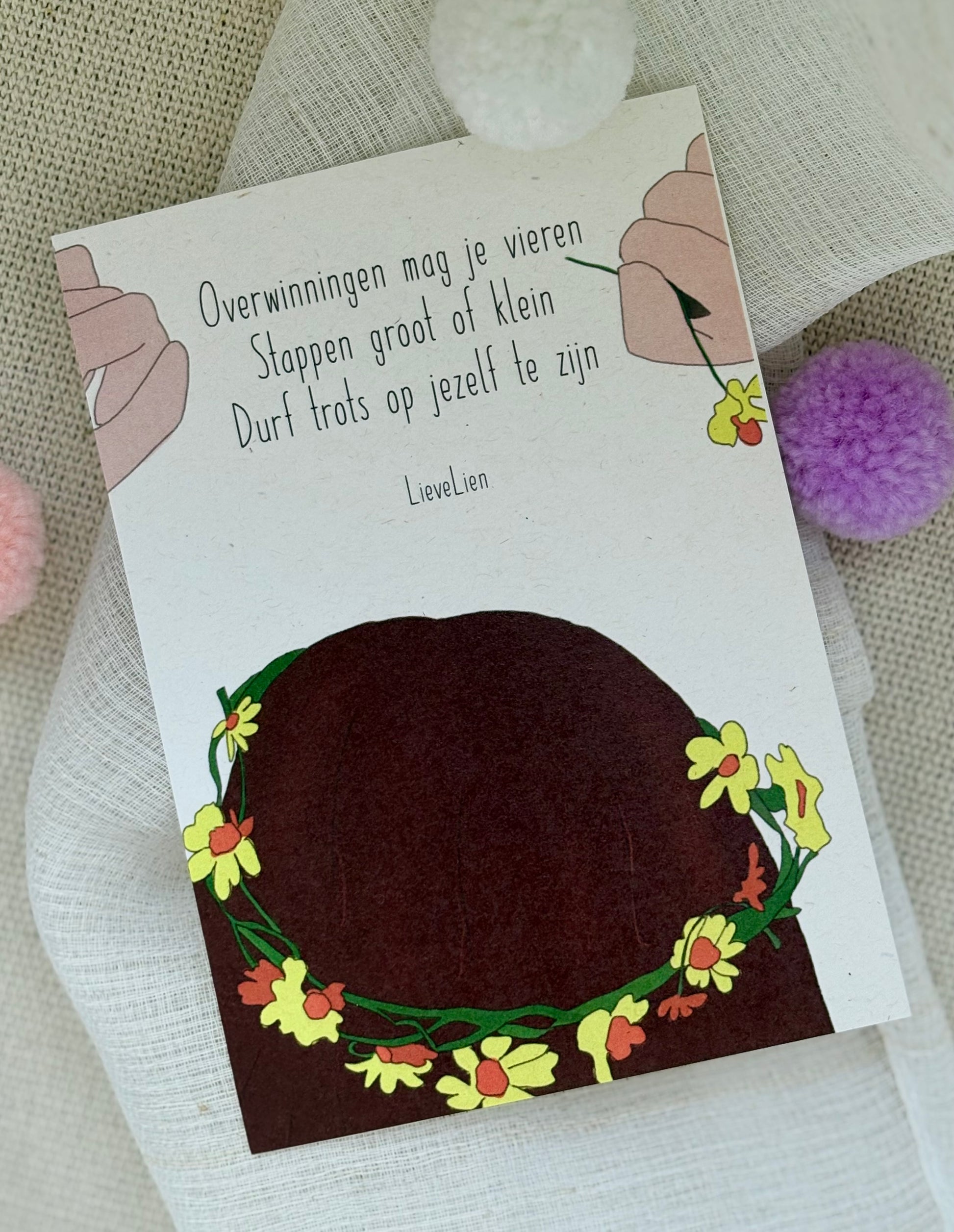 Bij ieder kaartje ontvang je een gerecyclede Kraft envelop, zodat je meteen iemand per post blij kunt maken met een vleugje zachtheid.